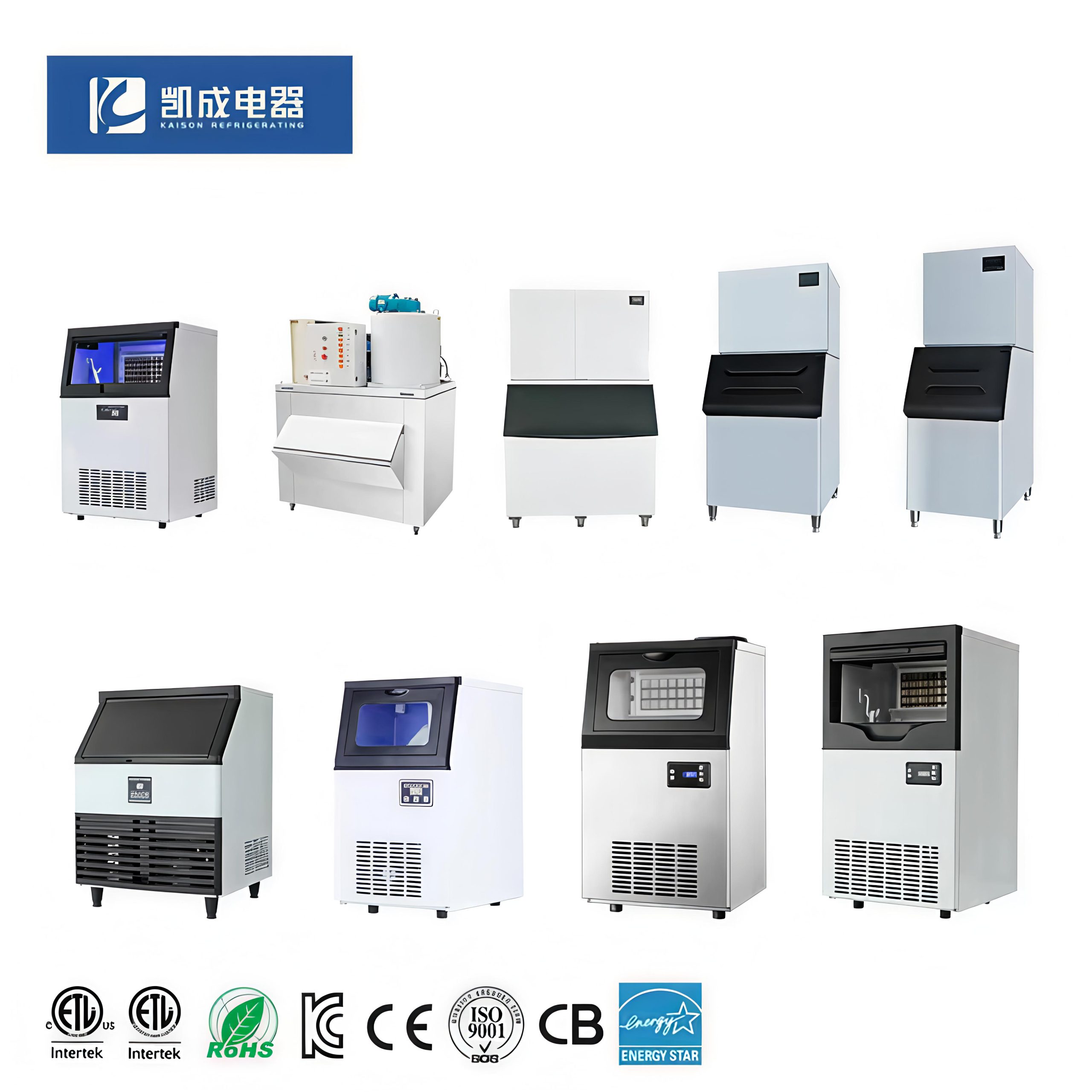 A: Cube ice, flake ice,snowflake ice, gourmet ice, bullet,nugget ice.Etc. Suitable for bars, restaurants, seafood markets, and commercial ice selling.