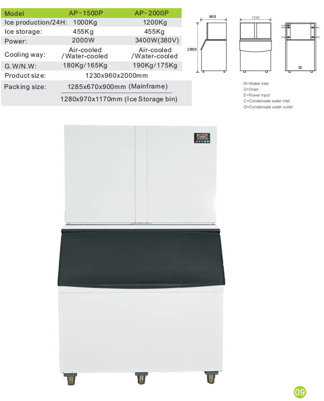 A: Gelo em cubos, gelo em flocos, gelo em flocos de neve, gelo gourmet, gelo em formato de bala, gelo em formato de pepita, etc. Adequado para bares, restaurantes, mercados de frutos do mar e venda comercial de gelo.